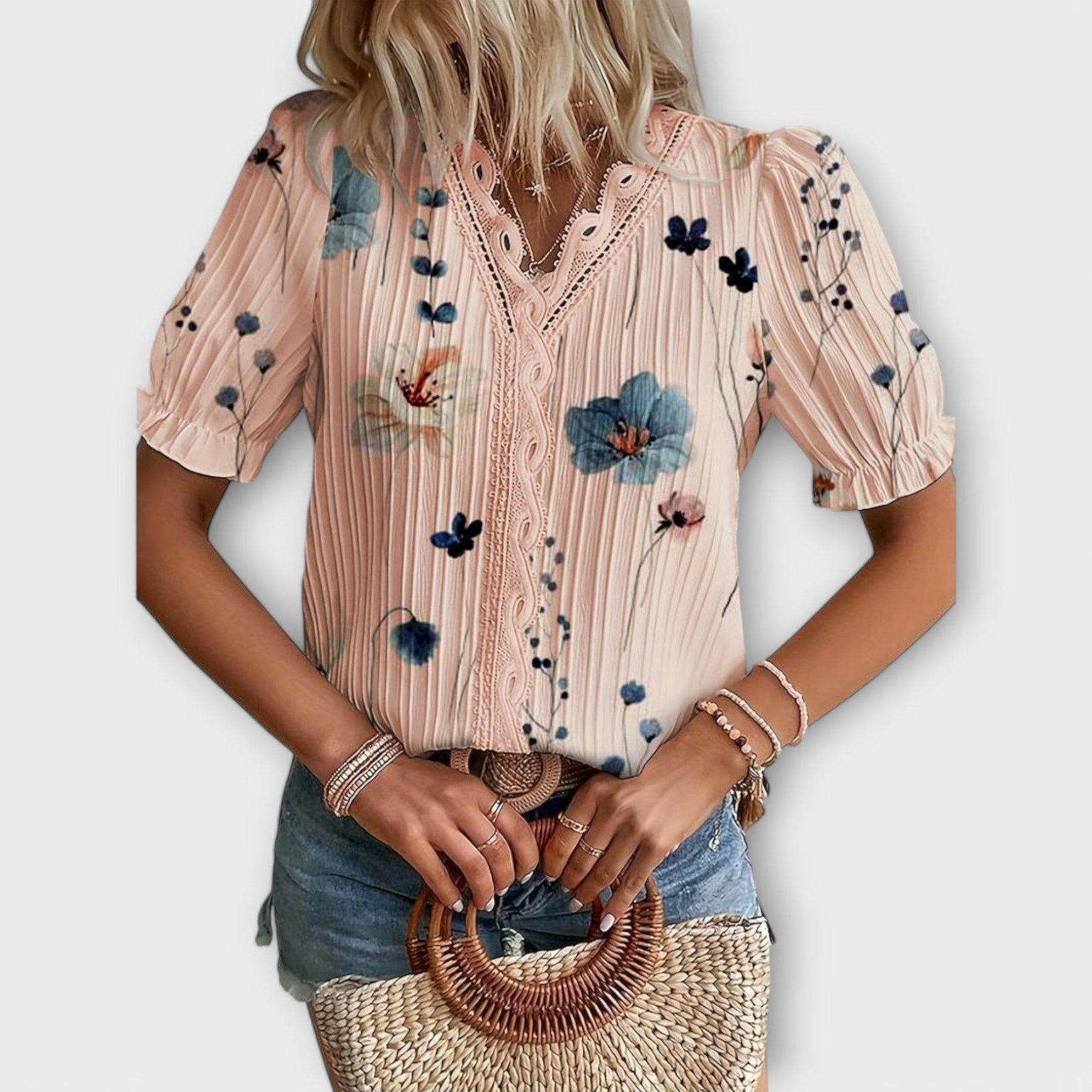 Complétez votre garde-robe avec la blouse intemporelle Emily, une pièce dotée d’un col en V élégamment découpé – parfaite pour le printemps. Le col en V raffiné met en valeur le décolleté avec subtilité, tandis que le tissu léger et respirant garantit un confort optimal. Sa coupe ample apporte une touche de décontraction tout en conservant une allure chic.